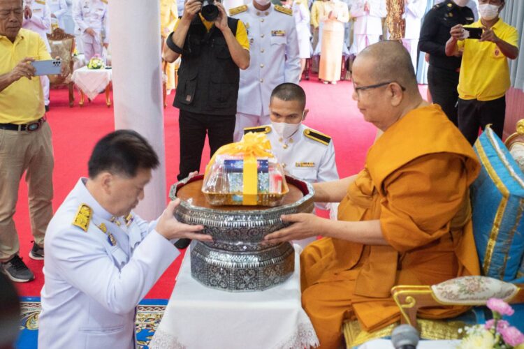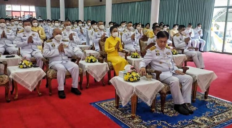 ข้าราชการชั้นผู้ใหญ่ ถวายภัตตาหารปิ่นโต ถวายเครื่องจตุปัจจัยไทยธรรมแด่พระสงฆ์ 10 รูป พระสงฆ์อนุโมทนา(ถวายอดิเรก) ผู้ว่าราชการจังหวัดนครนายก กรวดน้ำรับพร จากนั้นนายบัญชา เชาวริรทร์ ผู้ว่าราชการจังหวัดนครนายก และคู่สมรส พร้อมผู้ร่วมพิธี เข้าร่วมพิธีทำบุญตักบาตรข้าวสารอาหารแห้ง แด่พระสงฆ์และสามเณรรับบิณฑบาต จากนั้นผู้ว่าราชการจังหวัดนครนายก และผู้เข้าร่วมถวายสัตย์ปฏิญาณเพื่อเป็นข้าราชการที่ดีและพลังของแผ่นดิน จากนั้นเป็นพิธีลงนามถวายพระพรชัยมงคล เป็นอันเสร็จพิธี
