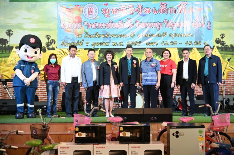 วันนี้ (วันเสาร์ที่ 7 ตุลาคม พ.ศ. 2566) มูลนิธิป่อเต็กตึ๊ง นำโดย นายวิชิต ชินวงศ์วรกุล รองประธานกรรมการ เป็นประธานในพิธี พร้อมด้วย นางศิริกุล โอภาสวงศ์ กรรมการและเลขาธิการ จัดคาราวาน “ป่อเต็กตึ๊ง ปันความสุข ให้ชุมชน” ยกทัพอาสาสมัครศิลปิน มูลนิธิป่อเต็กตึ๊ง นำโดย นายธวัชชัย คชาอนันต์ (แฮ็ค ชวนชื่น) นางสาววรินดา คุปติธรรมกุล (ปุ๊กกี้) นางสาวอธิชา เทศขำ (เมย์-อธิชา) นางสาวอรภัสญาน์ สุกใส (มิ้วส์) นางสาวไดอนา แอน คาฮิลส์ และอาสาสมัครศิลปินอีกหลายท่าน ร่วมกิจกรรมแจกของขวัญ และของรางวัลสุดพิเศษกว่า 100 รายการ พร้อมจัดบริการด้านการแพทย์ฟรีจากหน่วยแพทย์สงเคราะห์ชุมชนมูลนิธิป่อเต็กตึ๊ง และกิจกรรมนันทนาการจากหน่วยงานในเครือ 3 สถาบัน ได้แก่ โรงพยาบาลหัวเฉียว คลินิกการแพทย์แผนจีนหัวเฉียว และมหาวิทยาลัยหัวเฉียวเฉลิมพระเกียรติ อาทิ กิจกรรม ตรวจรักษาโรคทั่วไป แจกจ่ายยา นวดทุยหนา ตรวจและแจกแว่นสายตา ตัดผม การบริการฉีดวัคซีนโควิด-19 การเจาะเลือด เพื่อตรวจการทำงานของตับ ไต ไขมันในเส้นเลือด น้ำตาลในเลือด และเก๊าท์เบื้องต้น ฯลฯ รวมทั้งจัดให้มีการแจกจ่ายอาหารและเครื่องดื่มให้กับประชาชนภายในเขตบางกะปิ โดยมี นายวันชิด ศิรสีห์ รองผู้จัดการใหญ่มูลนิธิป่อเต็กตึ๊ง เป็นผู้กกล่าวรายงาน พร้อมด้วย นายชูชาติ พุ่มน้อย ผู้อำนวยการเขตบางกะปิ อาสาสมัครมูลนิธิฯ แขกผู้มีเกียรติ และประชาชนจำนวนมาก ร่วมในพิธี ณ โรงเรียนบ้านบางกะปิ เขตบางกะปิ กรุงเทพฯ