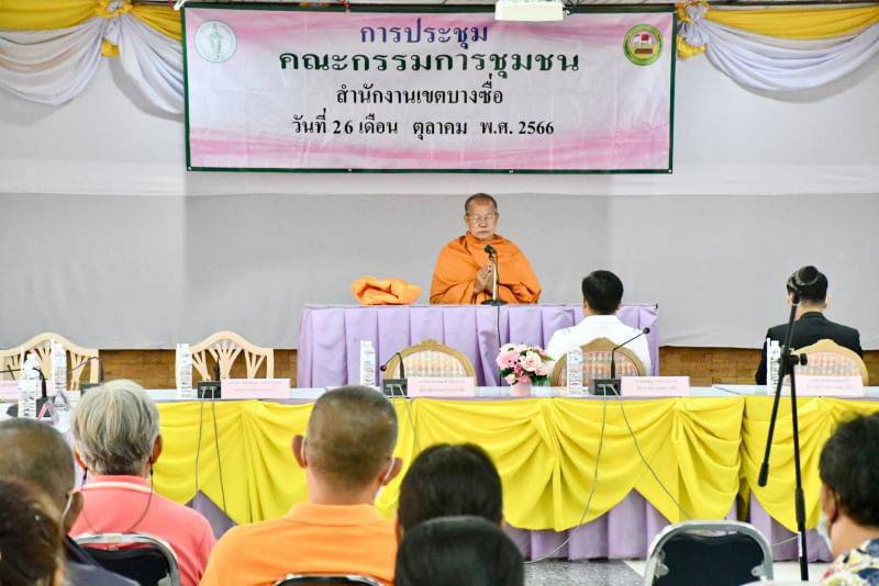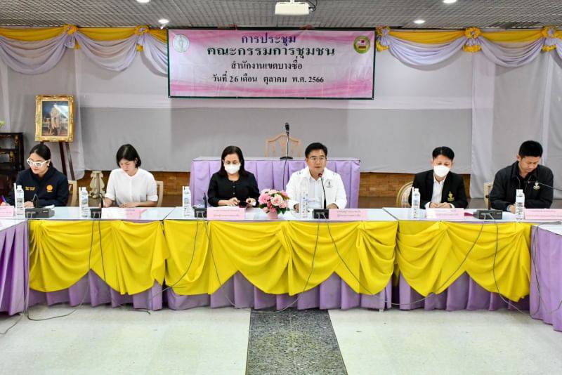 วันที่ 26 ตุลาคม 2566 เวลา 13.00 น. นายเจษฎา ประภาสะวัต ผู้อำนวยการเขตบางซื่อ พร้อมด้วยคณะผู้บริหารเขต ตัวแทนจากภาคส่วนต่างๆ เจ้าหน้าที่ที่เกี่ยวข้องและผู้แทนชุมนุมในเขตบางซื่อ ร่วมประชุมคณะกรรมการชุมชน แจ้งข้อราชการจากหน่วยงานต่างๆ แก่ชุมชน พร้อมทั้งรับฟังข้อคิดเห็น ข้อเสนอแนะ ปัญหาต่างที่เกิดขึ้นภายในชุมชน เพื่อหาแนวทางในการแก้ไขปัญหาเพื่อแก้ไขปัญหาความเดือดร้อนของประชาชนในชุมชน ณ ห้องประชุมประชาชื่น ชั้น 7 สำนักงานบางซื่อ