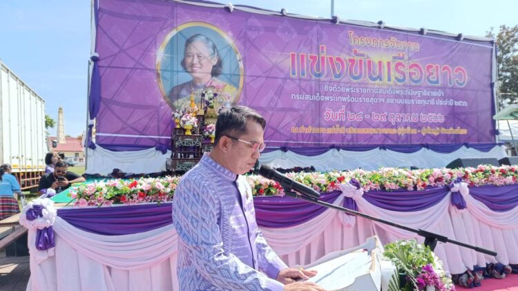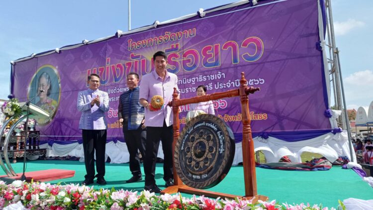 เมื่อเวลา 10.00 น.วันที่ 28 ต.ค.66 ที่บริเวณท่าคำทองแม่น้ำชี เขตเทศบาลเมืองยโสธร จังหวัดยโสธร โดยมี ดร.อุดม โปร่งฟ้า ที่ปรึกษารัฐมนตรีว่าการกระทรวงพัฒนาสังคมและความมั่นคงของมนุษย์ เดินทางมาเป็นประธานเปิดการแข่งขันเรือยาวชิงถ้วยพระราชทานสมเด็จพระกนิษฐาธิราชเจ้า กรมสมเด็จพระเทพ รัตนราชสุดาฯ สยามบรมราชกุมารี ประจำปี 2566 ตามที่ทางเทศบาลเมืองยโสธรได้จัดขึ้นเพื่อส่งเสริมสืบสานวัฒนธรรมประเพณีช่วงเทศกาลวันออกพรรษา จึงได้จัดให้มีงานประเพณีแข่งขันเรือยาวขึ้น เพื่อก่อให้เกิดความรักความสามัคคี บนพื้นฐานของวิถีชีวิตที่ผูกพันกับสายน้ำธรรมชาติและศรัทธาในพระพุทธศาสนา ซึ่งเป็นศูนย์รวมจิตใจของชุมชนท้องถิ่น เป็นจิตวิญญาณแห่งความเป็นไทยที่ควรค่าแห่งความภาคภูมิใจอย่างแท้จริง