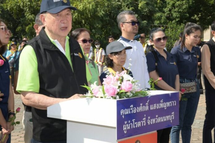 พร้อมยืนไว้อาลัยบริเวณลานพระบรมราชานุสาวรีย์รัชกาลที่ 5 เพื่อรำลึกถึงผู้สูญเสียจากอุบัติเหตุทางถนน (World Day of Remembrance for Road Traffic Victims) ประจำปี 2566 โดยมีนายเรืองศักดิ์ แสงเพ็ญพราว ผู้ช่วยผู้ว่าการภาคสโมสรโรตารีพร้อมคณะและเครือข่าย เข้าร่วมการประชาสัมพันธ์ผ่านสื่อให้ประชาชนรับทราบ และเกิดความตระหนัก กระตุ้นเตือนให้ประชาชนเกิดความตระหนักถึงความสูญเสียที่เกิดจากอุบัติเหตุทางถนน ทั้งนี้ จังหวัดนนทบุรีได้รับความร่วมมือจากทุกภาคส่วนเข้าร่วมกิจกรรมในครั้งนี้