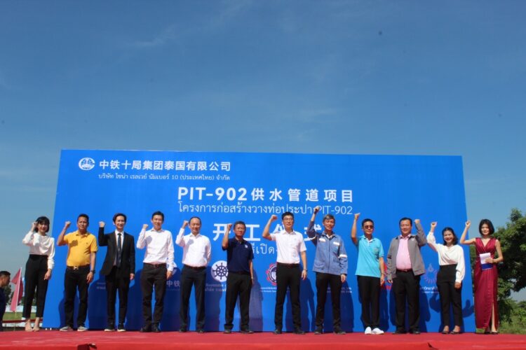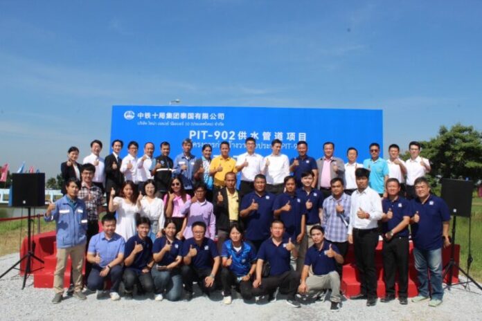 นาย ข่ง เชาว์ (Mr.kong Chao) รองประธานผู้จัดการ บริษัท ไชน่า เรลเวย์ นัมเบอร์ 10 (ประเทศไทย) จำกัด พร้อมด้วย นายหลิว ยู่ ห้าว (Mr. Lou Yu Hao) ผู้อำนวยการ โครงการสัญญา PIT-902 ร่วมเป็นประธานเปิดงาน “โครงการท่อส่งน้ำการประปานครหลวง สัญญา PIT-902 ระยะทาง 7.8 กิโลเมตร ระยะเวลาก่อสร้าง 840 วัน ณ บริเวณถนนไทรน้อย – วัดต้นเชือก ถึง ถนนบางกรวย – ไทรน้อย ของการประปานครหลวง โดยบริษัท ไชน่า เรลเวย์ นัมเบอร์ 10 (ประเทศไทย) จำกัด (ซึ่งเป็นผู้ดำเนินการโครงการในนามของกิจการร่วมค้า RLG) โดยมี นายวัฒน หมอใจบุญ ผู้อำนวยการกองก่อสร้างระบบจ่ายน้ำ 2 การประปานครหลวง ให้เกียรติมาร่วมงานและกล่าวแสดงความยินดี กับโครงการดังกล่าว พร้อมด้วยนายอนันต์ นิลมานนท์ นายกสมาคมหนังสือพิมพ์ส่วนภูมิภาคแห่งประเทศไทย ได้รับเชิญขึ้นกล่าวแสดงความยินดีในโอกาสนี้ด้วยเช่นกัน