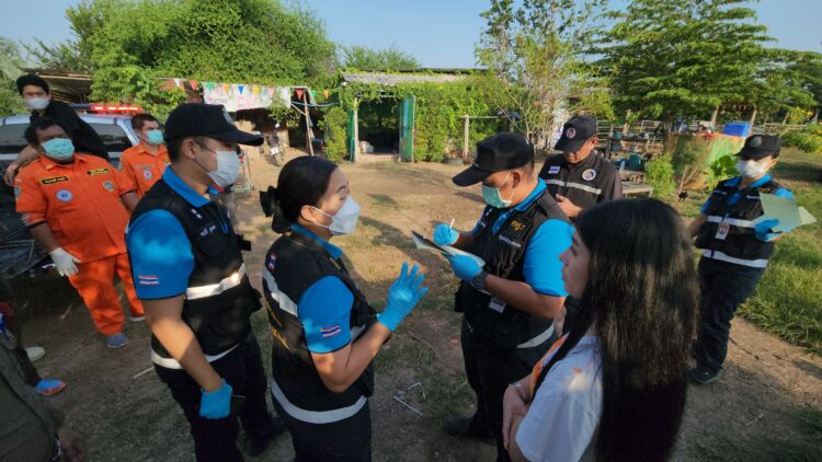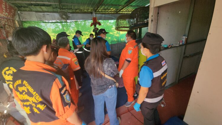 เมื่อเวลา 05.30 น.วันที่ 23 พ.ย.66 พ.ต.ต.จิรชัย บัวล้อม สว.(สอบสวน) สภ.เมืองกาญจนบุรี รับแจ้งเหตุมีคนยิงตัวตายที่พักคอกวัว หมู่ 8 บ้านใหม่ร่มเย็น ซอย 7 ต.ปากแพรก อ.เมือง จ.กาญจนบุรี จึงรายงานให้ พ.ต.อ.สุรยุทธ เมฆมังกร ผกก.สภ.เมืองกาญจนบุรี ทราบและรุดไปตรวจสอบพร้อมด้วย พ.ต.ท.วศิน พลายศิริ รอง ผกก.สส.สภ.เมืองกาญจนบุรี พ.ต.ท.มารุต ฉัตรทัณฑ์ สว.สืบสวนฯ ร.ต.อ.พินิจ สืบดี รอง สว.สืบสวน สภ.เมืองกาญจนบุรี พ.ต.ท.หญิง วิลาสินี วานิชชัง รอง ผกก.พฐ.กจ.ประสานแพทย์เวร รพ.พหลพลพยุหเสนา มูลนิธิพิทักษ์กาญจน์ สำนักงานใหญ่ ร่วมชันสูตรและมี จนท.กอ.รมน.กาญจนบุรี ร่วมตรวจสอบเหตุด้วยเพราะมีข้อร้องเรียนส่งเสียงดังรบกวนเพื่อนบ้าน