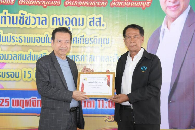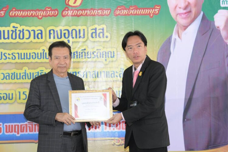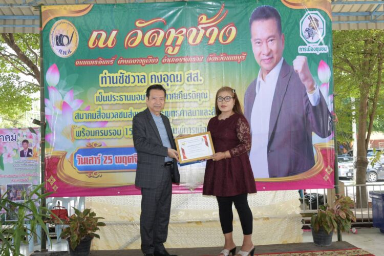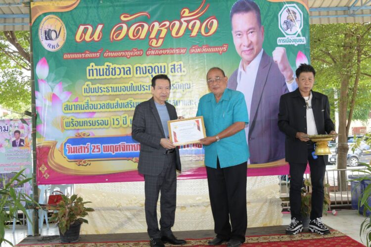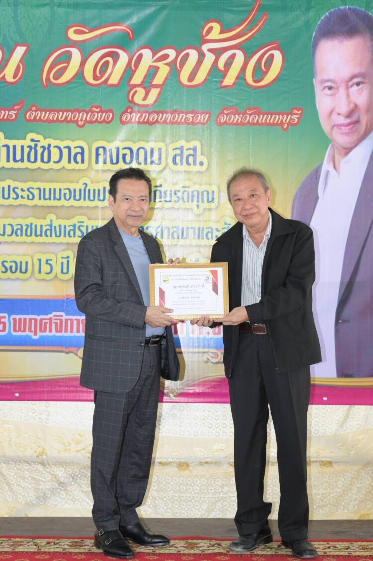 วันนี้( 25 พ.ย.66) เวลา 10.00 น. ที่วัดหูช้าง ถนนนครอินทร์ ตำบลบางคูเวียน อำเภอบางกรวย จังหวัดนนทบุรี ท่านฯชัชวาล คงอุดม รองหัวหน้าพรรครวมไทยสร้างชาติ เป็นประธานมอบใบเกียรติคุณให้กับทีมงาน นายปราโมทย์ ทองกุญชร นายกสมาคม ฯ.และผู้ที่มีผลงานเด่นด้านงานข่าวและผู้ทำคุณประโยชน์จำนวน 15 ราย เพื่อเป็นการยกย่อง เชิดชูเกียรติและคุณงามความดี พร้อมกันนี้ ได้จัดงานวันครอบ 15 ปี หนังสือพิมพ์การชุมชน โดยกิจกรรมดังกล่าวมีแขกผู้มีเกียรติชั้นผู้ใหญ่และสื่อมวลชนร่วมกิจกรรมดังกล่าวจำนวนมาก