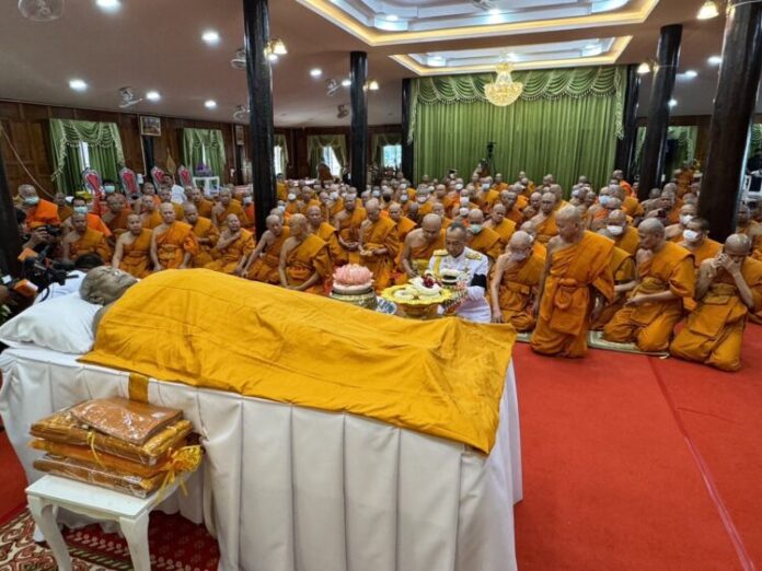 ทั้งนี้ พล.ต.อ.ต่อศักดิ์ สุวิมล ผบ.ตร. พร้อมด้วยพล.ต.ต.วิวิฒน์ คำชำนาญ รองผบช.สอท. และได้ข้าราชการตำรวจจำนวนหนึ่ง เดินทางไปร่วมสรงน้ำสรีระหลวงพ่อพัฒน์ โดย “บิ๊กต่อ” ได้เข้าไปกราบที่เท้าและหัวไหล่ของสรีระหลวงพ่อพัฒน์ เพื่อกราบลาเป็นครั้งสุดท้าย ในฐานะลูกศิษย์ก้นกุฎิ ที่หลวงพ่อพัฒน์ยกให้เป็นลูกบุญธรรมของท่าน ส่วนพระพิธีธรรมสวดพระอภิธรรมนั้น จะมีพิธีดังกล่าวตั้งแต่วันนี้ ไปจนถึงวันที่ 3 ธันวาคม 2566 เริ่มเวลา 18.30 น. โดยยังไม่มีการกำหนดวันพระราชทานเพลิงศพ และการเก็บรักษาสรีระของหลวงพ่อพัฒน์ จะถูกบรรจุไว้ในโรงแก้ว ที่จัดทำขึ้นเป็นพิธี และตั้งไว้อยู่ภายในห้องปลอดเชื้อ