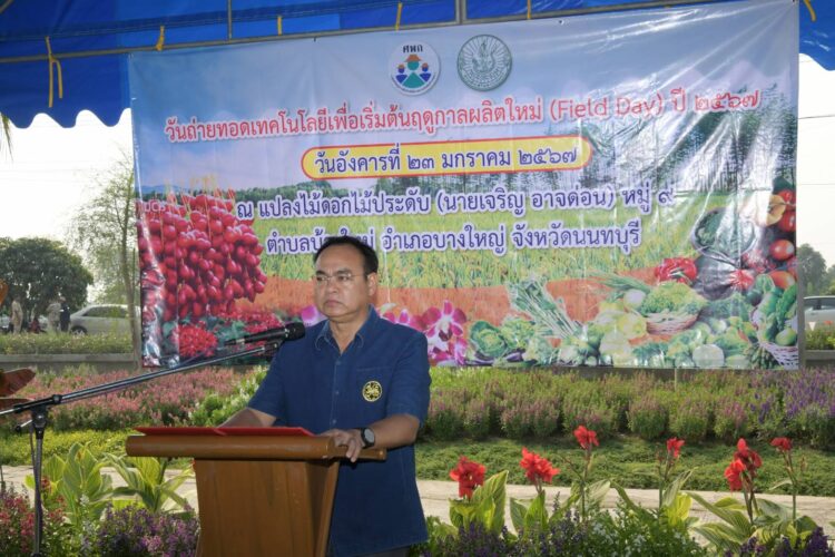 วันนี้ (23 มกราคม 2567) เวลา 10.00 น. ณ ศูนย์เครือข่าย ศพก. (แลงนายเจริญ อาจด่อน) หมู่ที่ 9 ตำบลบ้านใหม่ อำเภอบางใหญ่ จังหวัดนนทบุรี นายสุธี ทองแย้ม ผู้ว่าราชการจังหวัดนนทบุรี เป็นประธานเปิดงานวันถ่ายทอดเทคโนโลยีเพื่อเริ่มต้นฤดูกาลผลิตใหม่ ปี 2567 อำเภอบางใหญ่ โดยมีนางสาวญาณิพัชญ์ ศรีโคตร นายอำเภอบางใหญ่ กล่าวต้อนรับ และนายมาโนช ระรวยรส รักษาราชการแทนเกษตรจังหวัดนนทบุรี กล่าวรายงาน วัตถุประสงค์การจัดงานในครั้งนี้เพื่อส่งเสริมให้เกษตรกรได้เรียนรู้การใช้เทคโนโลยีและภูมิปัญญาที่มีความเหมาะสมกับพื้นที่ด้วยการถ่ายทอดความรู้แบบเห็นจริง โดยภายในงานจัดให้มีสถานีการเรียนรู้ทั้งหมด 4 สถานี ดังนี้