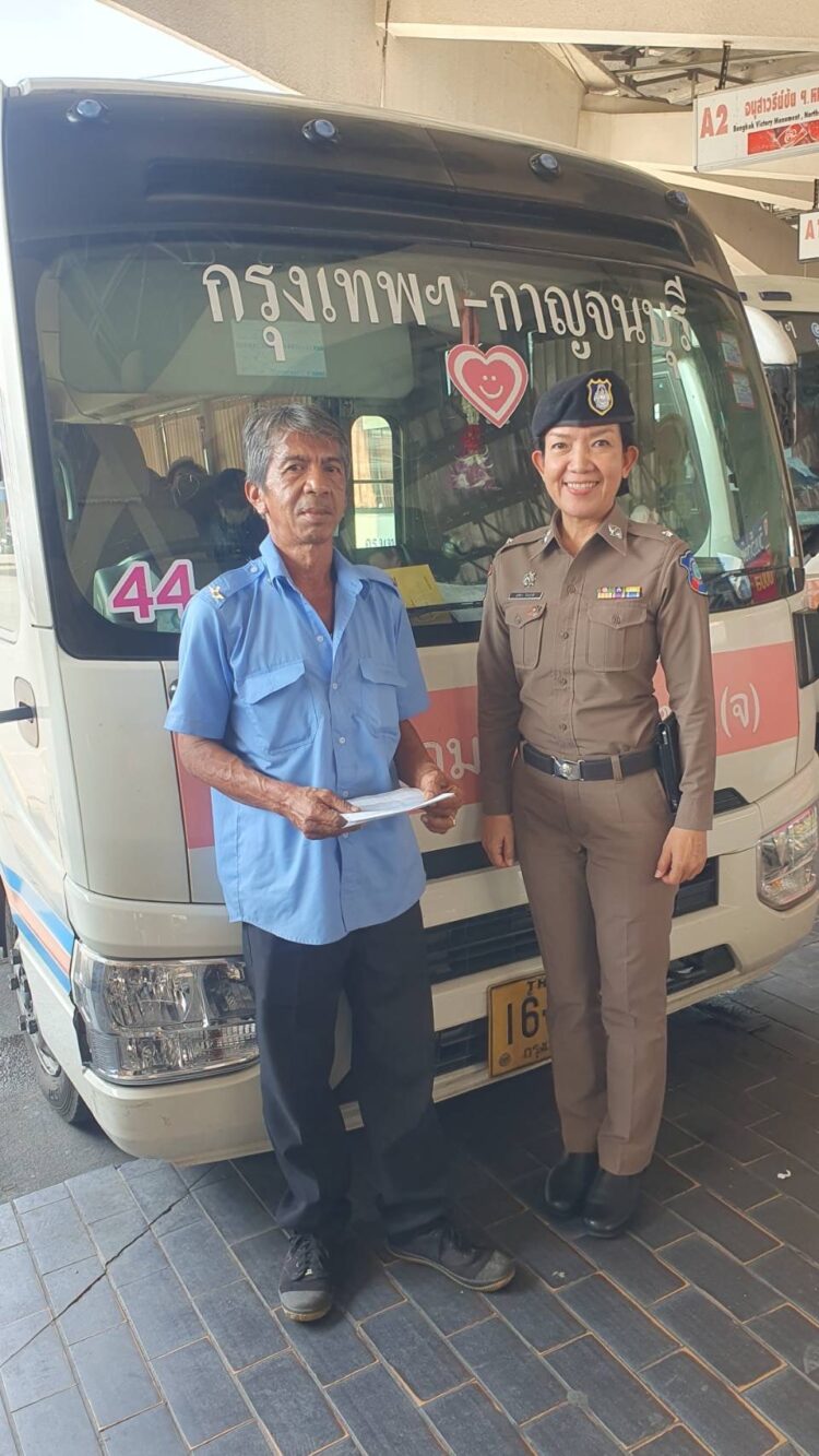 ผู้สื่อข่าวได้ลงพื้นที่สถานีขนส่งผู้โดยสารจังหวัดกาญจนบุรี ได้พบกับ ร.ต.ต.สุชีลา ใจเก่งดี รอง สารวัตรป้องกันปรามปราบ สถานีตำรวจท่องเที่ยวกาญจนบุรี เล่าให้ฟังว่า เมื่อวานนี้ได้มีนักท่องเที่ยวชาวฝรั่งเศสชายหญิงเข้ามาแจ้งข้อมูลว่า ได้ทำกระเป๋าสตางค์หล่นในรถโดยสารมินิบัส โดยนักท่องเที่ยวได้นำตั๋วมาให้เราช่วยตรวจสอบจึงพบว่าเป็นของรถตู้ วินเอ็กซ์เพรส ทางเราก็ได้ประสานไปยังกับนายท่า เพื่อแจ้งว่ามีนักท่องเที่ยวทำกระเป๋าตังค์หล่น ในรถโดยสารมินิบัสเบอร์ 44 โดยเป็นรถตู้เที่ยวสุดท้ายที่เดินทางจากกรุงเทพฯ มาที่กาญจนบุรี ซึ่งนายท่าก็ได้ประสานงานไปยังคนขับรถ และก็ทราบว่ามีกระเป๋าสตางค์หล่นอยู่จริง และได้ประสานงานส่งมอบคืนทรัพย์สินในครั้งนี้ เมื่อนักท่องเที่ยวทราบว่า พบกระเป๋าสตางค์ของตนก็ดีใจมากๆ ขอขอบพระคุณทุกคนที่มีส่วนร่วมทั้งบริษัททั้งคนขับรถ และนักท่องเที่ยวยังได้บอกว่าเงินจำนวนนี้เป็นเงินที่ตั้งใจเก็บออมมา เพื่อที่จะมาเที่ยวประเทศไทย ส่วนตัวเองก็รู้สึกยินดีและดีใจมากๆที่ได้ช่วยเหลือนักท่องเที่ยวในครั้งนี้และยินดีต้อนรับนักท่องเที่ยวทั่วทุกมุมโลกที่จะมาเที่ยวในประเทศไทย ตำรวจท่องเที่ยวยินดีรับใช้ทุกท่าน ซึ่งทางเราก็มีสายด่วน 1155 ที่จะเป็นเพื่อนคนแรกของนักท่องเที่ยวทั่วโลก 1155 Your First Friend