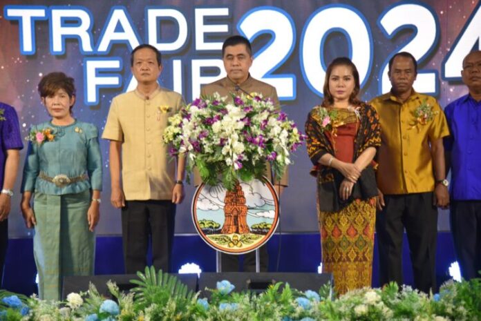 เมื่อวันที่ 31 มกราคม 2567 เวลา 17.30 น. ที่บริเวณสนามหน้าศาลากลางจังหวัดศรีสะเกษ นายอนุพงศ์ สุขสมนิตย์ ผู้ว่าราชการจังหวัดศรีสะเกษ เป็นประธานเปิดงานแสดงจำหน่ายสินค้าและเจรจาธุรกิจเชื่อมโยงกับประเทศเพื่อนบ้าน “Sisaket Trade Fair 2024″ในระหว่างวันที่ 30 มกราคม ถึงวันที่ 3 กุมภาพันธ์ 2567