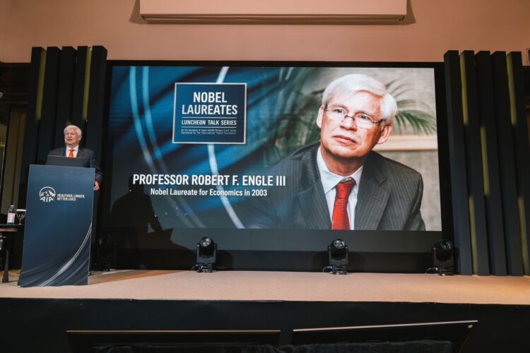 กรุงเทพฯ, 29 กุมภาพันธ์ 2567 – เอไอเอ ประเทศไทย เดินหน้าจัดงาน AIA Nobel Laureates Luncheon Talk Series ซึ่งเป็นส่วนหนึ่งของงาน Japan-ASEAN Bridges Event Series ร่วมกับ The International Peace Foundation ในหัวข้อ “A Financial Approach to Climate Risk” โดยศาสตราจารย์โรเบิร์ต เอนเกิล เจ้าของรางวัลโนเบลสาขาเศรษฐศาสตร์ ปี 2546 ซึ่งได้ค้นพบโมเดล Autoregressive Conditional Heteroskedasticity (ARCH) ที่นำมาใช้วิเคราะห์ความผันผวนของดัชนีหลักทรัพย์ รวมไปถึงการคิดค้น “แผนป้องกันความเสี่ยงด้านสภาพภูมิอากาศ” (Climate Hedge Portfolios) ซึ่งถือเป็นความเสี่ยงระยะยาวที่จะส่งผลกระทบต่อเศรษฐกิจและการดำรงชีวิตของทุกคน เพื่อต่อยอดความมุ่งมั่นของเอไอเอ ที่ต้องการสนับสนุนให้คนไทยมีสุขภาพชีวิตและสุขภาพการเงินที่มั่นคงอย่างยั่งยืน ตามคำมั่นสัญญา ‘Healthier, Longer, Better Lives – เพื่อสุขภาพและชีวิตที่ดีขึ้น’ ร่วมด้วยผู้ทรงคุณวุฒิและนักวิชาการจากหลากหลายสถาบันที่เข้าร่วมรับฟังการบรรยายในครั้งนี้ ซึ่งจัดขึ้นเมื่อวันที่ 28 กุมภาพันธ์ 2567 ณ ห้องบอลรูม โรงแรมสุโขทัย กรุงเทพ