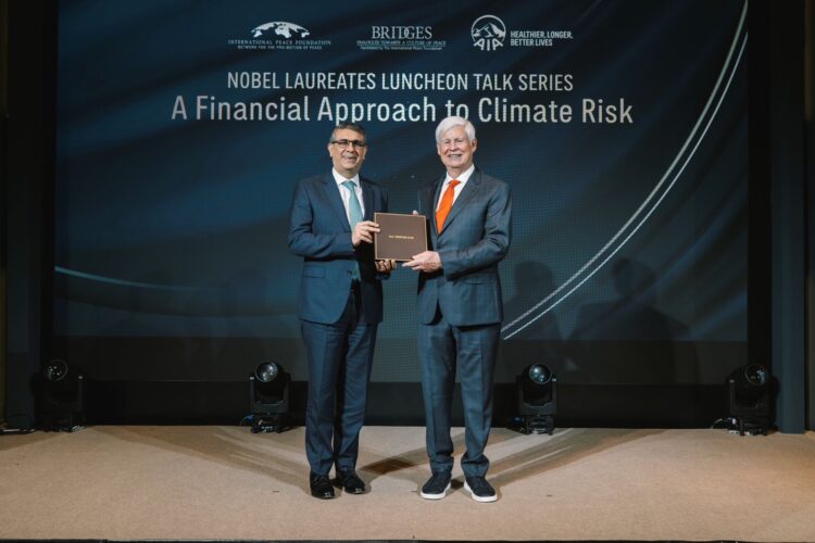 นายนิคฮิล แอดวานี ประธานเจ้าหน้าที่บริหาร เอไอเอ ประเทศไทย กล่าวว่า “เอไอเอ มีความยินดีเป็นอย่างยิ่งที่ได้จัดงานอันทรงคุณค่าอย่าง AIA Nobel Laureates Luncheon Talk Series เป็นครั้งที่ 2 ซึ่งถือเป็นการตอกย้ำถึงเป้าหมายของเราที่ต้องการสร้างการมีส่วนร่วมกับสังคมและผู้คนอย่างน้อยหนึ่งพันล้านคนให้มีสุขภาพและชีวิตที่ดีขึ้นภายในปี 2573 แน่นอนว่าปัญหาการเปลี่ยนแปลงสภาพภูมิอากาศ หรือ Climate change ได้กลายเป็นหนึ่งในความเสี่ยงหลักที่ส่งผลกระทบต่อชุมชนและเศรษฐกิจโลก ในฐานะที่เอไอเอเป็นบริษัทประกันชีวิตอันดับหนึ่ง ที่นอกจากจะมอบความคุ้มครองด้านชีวิตและสุขภาพแล้ว เรายังเป็นองค์กรที่มุ่งมั่นด้าน ESG มาอย่างต่อเนื่องผ่านการลงทุนในหุ้น พันธบัตร และอสังหาริมทรัพย์ที่เป็นมิตรต่อสิ่งแวดล้อม พร้อมกันนั้นเรายังตั้งเป้าลดการปล่อยก๊าซเรือนกระจกสุทธิเป็นศูนย์ (Net Zero) ภายในปี 2593 เพื่อแสดงถึงความเป็นผู้นำด้าน ESG ในภูมิภาคเอเชีย แปซิฟิก ตลอดจนทำให้เอไอเอสามารถดูแลลูกค้า ชุมชน และสังคม รวมถึงประเทศชาติได้อย่างยั่งยืน