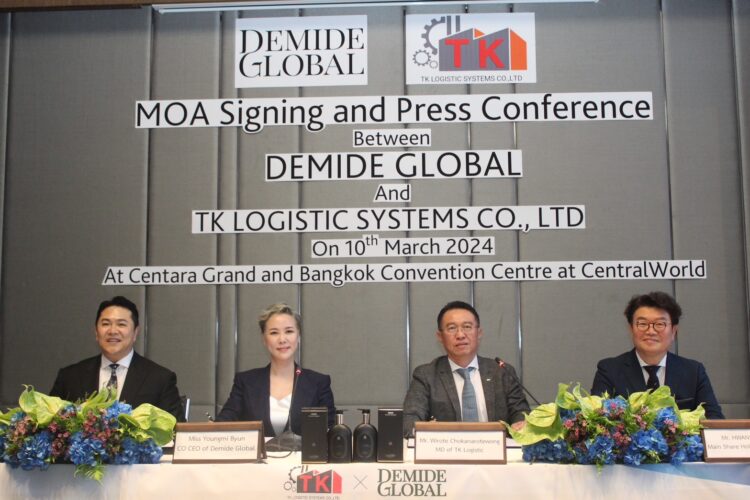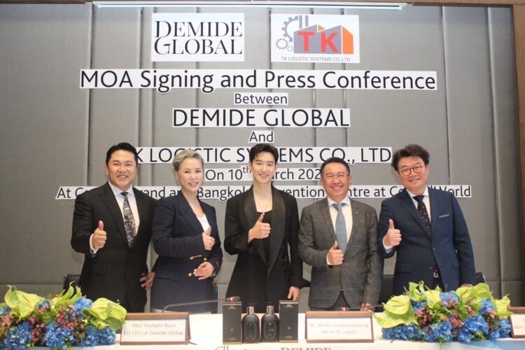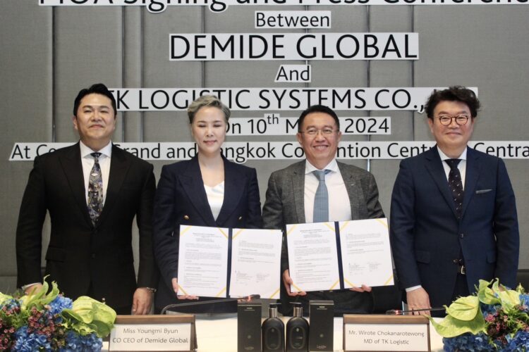 (กรุงเทพ, 10 มีนาคม 2567) – บริษัท ทีเค โลจิสติก ซิสเต็มส์ จำกัด มีความยินดีที่จะประกาศการลงนาม ข้อตกลงความร่วมมือกับ Demide Global Inc., ซึ่งเป็นผู้นำระดับโลกที่มีชื่อเสียงด้านการผลิตและจำหน่าย เครื่องสำอางพรีเมี่ยมจากเกาหลีใต้ ข้อตกลงสำคัญนี้ จะช่วยส่งเสริมการจัดจำหน่ายเครื่องสำอางแบรนด์ระดับ พรีเมี่ยมในวงกว้าง โดยเน้นไปที่ห้างสรรพสินค้าและไฮเปอร์มาร์เก็ตโดยเฉพาะ