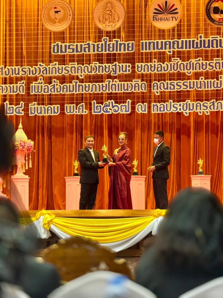 ภายใต้โครงการงานรางวัลเกียรติคุณวิทยฐานะยกย่องเชิดชูเกียรติบุคคลและองค์กร แห่งชาติ”ร้อยใจรักษ์ ทำความดีเพื่อสังคมไทย ภายใต้แนวคิด คุณธรรมนำแผ่นดิน สร้างชาติ สร้างไทย” เพื่อ สรรค์สร้างบุคคลผู้เป็นต้นแบบตัวอย่างของสังคมร่วมกับ ผอ.ฟ้า พรทิพา สุพัฒนุกูล ผู้อำนวยการสถานีโทรทัศน์ฟ้าให้ทีวี ดาวเทียม จานดำ ช่อง 160 ประธานกิตติคุณมอบรางวัลให้แก่บุคคลต้นแบบตัวอย่างองค์กรของสังคมและประเทศชาติ