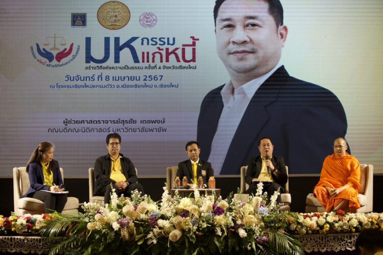 วันนี้ (8 เมษายน 2567) ณ โรงแรมเชียงใหม่แกรนด์วิว อำเภอเมืองเชียงใหม่ จังหวัดเชียงใหม่ พ.ต.อ.ทวี สอดส่อง รมว.ยุติธรรม เป็นประธานในพิธีเปิดงาน “มหกรรมแก้หนี้ สร้างวิถีแห่งความเป็นธรรม” ครั้งที่ 4 ประจำปีงบประมาณ พ.ศ. 2567 จัดโดยกรมคุ้มสิทธิและเสรีภาพ และกรมบังคับคดี ร่วมกับสำนักงานยุติธรรมจังหวัดเชียงใหม่ โดยมีนายวรวิทย์ ชัยสวัสดิ์ รองผู้ว่าราชการจังหวัดเชียงใหม่ เป็นผู้กล่าวต้อนรับ และ นางเพ็ญรวี มาแสง รองอธิบดีกรมบังคับคดี เป็นผู้กล่าวรายงาน ในการนี้ พันตำรวจโท พงษ์ธร ธัญญสิริ ผู้อำนวยการสำนักงานกิจการยุติธรรม นางสุจิตรา แก้วไกร รองอธิบดีกรมพินิจและคุ้มครองเด็กและเยาวชน นายณรงค์ จุ้นเส่ย รองอธิบดีกรมราชทัณฑ์ นายชัยณรงค์ กัจฉปานันท์ ผู้จัดการกองทุนเงินให้กู้ยืมเพื่อการศึกษา พร้อมหัวหน้าส่วนราชการในสังกัดกระทรวงยุติธรรมในพื้นที่จังหวัดเชียงใหม่ ให้เกียรติเข้าร่วมงานด้วย