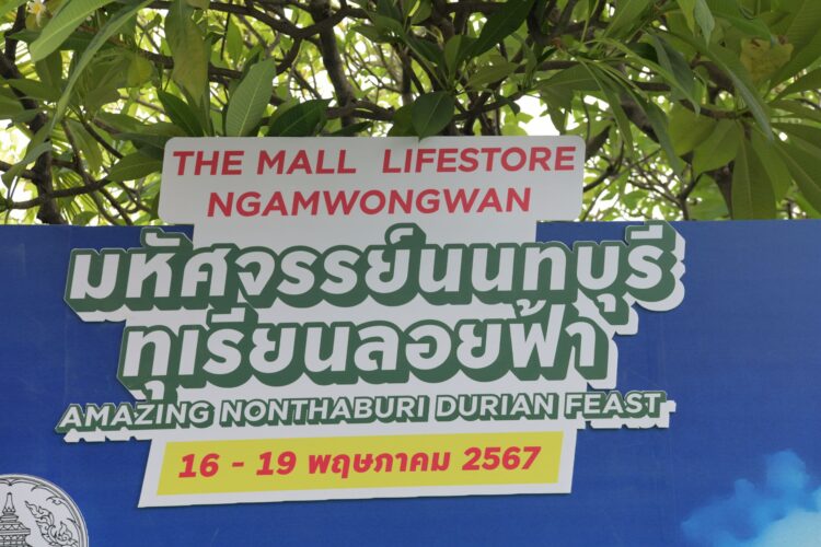 วันนี้ (16 พ.ค.67) เวลา 10.00 น. นางสาวปาณิสรา กาญจนะจิตรา รองผู้ว่าราชการจังหวัดนนทบุรี เป็นประธานเปิดงานมหัศจรรย์นนทบุรีทุเรียนลอยฟ้า โดยจังหวัดนนทบุรีร่วมกับเดอะมอลล์ไลฟ์สโตร์ งามวงศ์วาน สำนักงานเกษตรจังหวัดนนทบุรี, พาณิชย์จังหวัดนนทบุรี และเครือข่ายวิสาหกิจชุมชนจังหวัดนนทบุรี จัดงาน “มหัศจรรย์นนทบุรีทุเรียนลอยฟ้า AMAZING NONTHABURI DURIAN FEAST” ชวนมาทานบุฟเฟต์ทุเรียนหมอนทอง และผลไม้อื่น ๆ ภายในงานแบบจุก ๆ ไม่อั้น พร้อมลุ้นรับทุเรียนนนท์ฟรี! งานดังกล่าวจัดขึ้นระหว่างวันที่ 16 -19 พฤษภาคม 2567 ที่ชั้น 6 เดอะมอลล์ไลฟ์สโตร์ งามวงศ์วาน สำหรับบุฟเฟต์ทุเรียน เดอะมอลล์ งามวงศ์วาน มีผลไม้ให้รับประทาน คือ ทุเรียนหมอนทอง มังคุด เงาะ ไอศกรีม น้ำสมุนไพร ราคา 699 บาท/ ท่าน พิเศษสมาชิก MCard แลก 59 M Point หรือ สมาชิก/ลูกค้า สวนน้ำ แฟนตาเซีย ลากูน ลดเหลือเพียง 595 บาท/ ท่าน (สิทธิพิเศษมีจำนวนจำกัด) แบ่งเป็นกี่รอบต่อวันบุฟเฟต์ทุเรียนหมอนทอง 60 นาทีเต็ม (5 รอบต่อวัน /จำกัดรอบละ 60 ท่านต่อรอบ) คือ รอบ 12.30 น. รอบ 14.00 น. รอบ 15.30 น. รอบ 17.00 น. และรอบ 18.30 น.