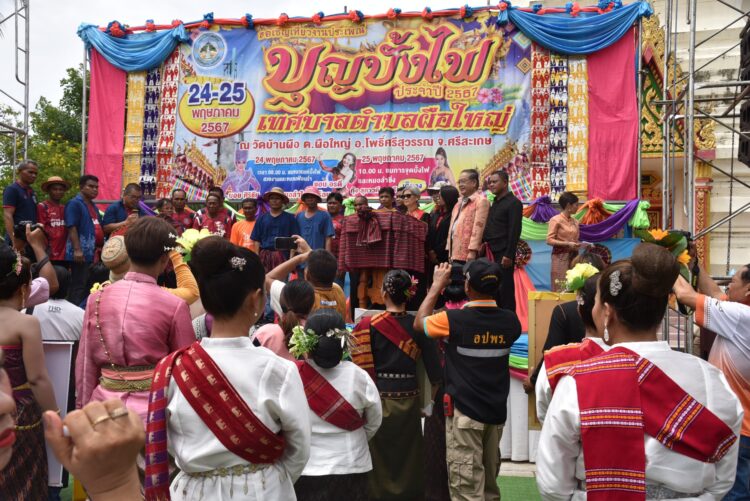 เมื่อวันที่ 24 พฤษภาคม 2567 ที่วัดบ้านผือ ตำบลผือใหญ่ อำเภอโพธิ์ศรีสุวรรณ จังหวัดศรีสะเกษ นางผ่องศรี แซ่จึง อดีตสมาชิกสภาผู้แทนราษฎรจังหวัดศรีสะเกษเขต 9 เป็นประธานเปิดงานโครงการสืบสานประเพณีบุญบั้งไฟ ประจำปี 2567 โดยมีนายประยูร เดชหาญ นายกเทศมนตรีตำบลผือใหญ่ นำองค์กรปกครองส่วนท้องถิ่น กำนัน ผู้ใหญ่บ้านฯ และประชาชนร่วมงานในครั้งนี้ ภายในงานมีกิจกรรมประกอบไปด้วย การประกวดขบวนแห่บั้งไฟเอ้งาม การแสดงฟ้อนรำสวยงามจากกลุ่มสตรีของตำบลผือใหญ่ และการจุดบั้งไฟประเพณีขอฝน ของหมู่บ้านชุมชนขนาดท่อ 3 นิ้ว