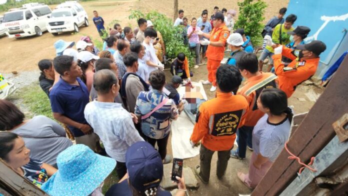 เมื่อเวลา 10.30 น.วันที่ 11 มิ.ย.2567 พ.ต.ท.ภูชิต เกตุแก้ว สารวัตรสอบสวน สภ.เลาขวัญ จ.กาญจนบุรี ได้รับแจ้งมีผู้ถูกยิงบาดเจ็บและเสียชีวิต ที่บ้านเลขที่ 113/1 ม.3 ต.เลาขวัญ อ.เลาขวัญ จ.กาญจนบุรี จึงรายงานให้ พ.ต.อ.สิทธิพงศ์ สังข์แสง ผกก.สภ.เลาขวัญ ทราบและรุดไปตรวจสอบพร้อมด้วยแพทย์เวร รพ.เลาขวัญ และมูลนิธิพิทักษ์กาญจน์ จุดเลาขวัญ ร่วมตรวจสอบโดยมี นางเกษร ชาวสวน กำนันตำบลเลาขวัญ ให้ข้อมูลที่เกิดเหตุ