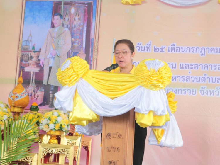 โดยมี นายพีรเดช แพงภูงา ปลัดอำเภอบางกรวย (เจ้าพนักงานปกครองชำนาญการพิเศษ)กล่าวต้อนรับ นางสาวปริศนา ลักษณะกุลบุตร นายกองค์การบริหารส่วนตำบลบางขุนกอง กล่าวบรรยายข้อมูลพื้นที่โดยสังเขป และ นางพลัศริญญา อมรพันธุ์ศักดิ์ เกษตรจังหวัดนนทบุรี กล่าวรายงานวัตถุประสงค์การจัดงานเพื่อให้บริการแก่เกษตรกร ในการแก้ไขปัญหาการผลิตด้านการเกษตรได้อย่างรวดเร็ว และสอดคล้องกับความต้องการของเกษตรกร ซึ่งมีการบูรณาการความร่วมมือกันระหว่างหน่วยงานวิชาการ หน่วยงานส่งเสริมและหน่วยงานที่เกี่ยวข้องร่วมพัฒนาฟื้นฟูเกษตรกร ให้สามารถทำการผลิตทางการเกษตรได้อย่างมีประสิทธิภาพและยั่งยืน และเนื่องในโอกาสพระราชพิธีมหามงคลเฉลิมพระชนมพรรษา 6 รอบ 28 กรกฎาคม 2567 เพื่อเป็นการแสดงความจงรักภักดี และสำนึกในพระมหากรุณาธิคุณอย่างหาที่สุดมิได้ ที่ทรงปฏิบัติพระราชกรณียกิจนานัปการ