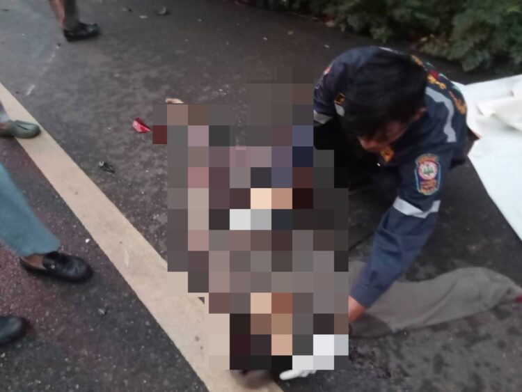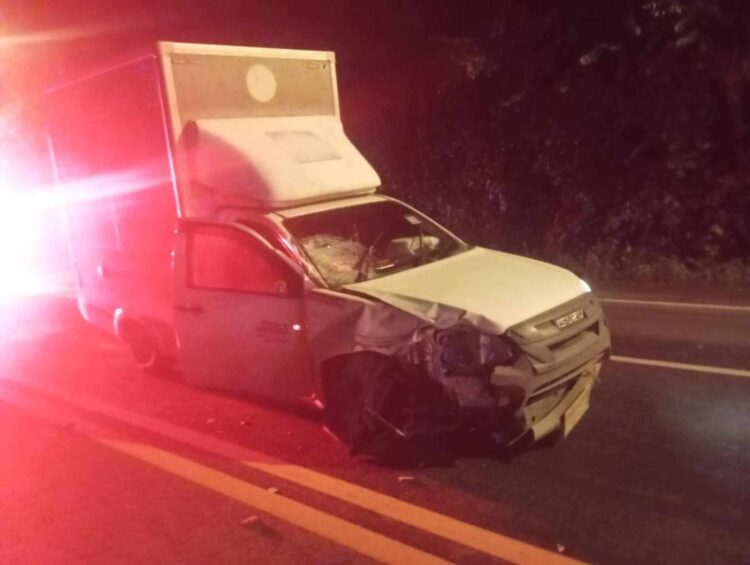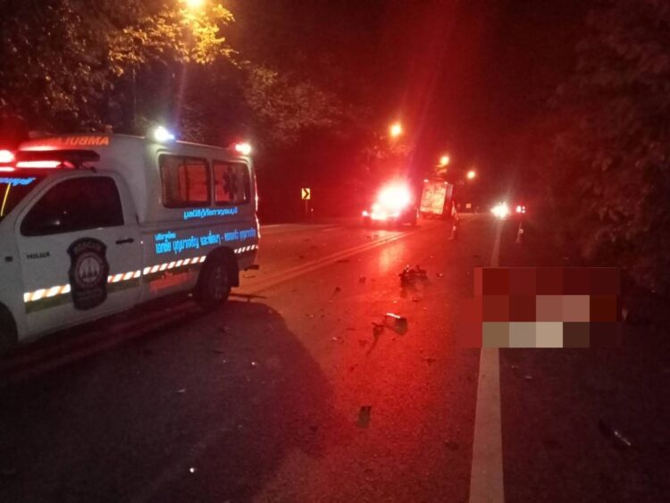 พบว่าจุดเกิดเหตุมีเจ้าหน้าที่อาสาสมัครกู้ชีพ-กู้ภัยพลังบุญของมูลนิธิกู้ภัยกาญจนบุรี ศูนย์ไทรโยคน้อย พร้อมรถพยาบาลไทรโยคน้อย คันที่ 3 คันที่ 5 พร้อมอุปกรณ์แสงสว่าง เนื่องจากที่เกิดเหตุเป็นทางโค้งที่ค่อนข้างมืด เกรงว่าอาจจะเกิดอุบัติเหตุซ้ำซ้อนเกิดขึ้นได้ ตรวจสอบบริเวณกลางถนนพบรถยนต์กระบะยี่ห้อ ISUZU D-max ตู้ทึบสีขาว หมายเลขทะเบียน 2 ฒน.6344 กรุงเทพมหานครฯ ซึ่งรถคันดังกล่าวเป็นรถรับจ้างส่งสินค้าร้านสะดวกซื้อชื่อดัง จอดอยู่ในสภาพกันชนด้านขวาหน้าจนล้อหลุด กระจกแตกร้าว และสีข้างด้านขวามีร่องรอยเฉี่ยวชนจนพังเสียหาย เศษชิ้นส่วนทั้งรถยนต์ และรถจักรยานยนต์กระจายเกลื่อนพื้นถนน ห่างไปประมาณ 20-30 เมตรพบร่างผู้เสียชีวิตเป็นผู้ชายนอนหงายจมกองเลือดอยู่ ที่บริเวณพงหญ้าข้างทางพบซากรถจักรยานยนต์ยี่ห้อยามาฮ่ารุ่น finn สีแดง หมายเลขทะเบียน 1 กผ.9199 กาญจนบุรี ล้มคว่ำพังเสียหายอยู่