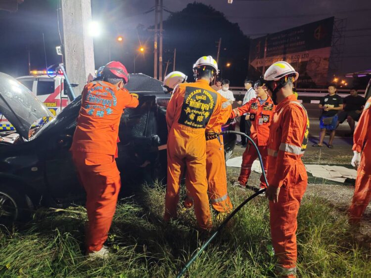 ผู้สื่อข่าวรายงานว่า อุบัติเหตุรายแรกเกิดขึ้นเมื่อเวลา 04.40 น.ของวันที่ 9 พ.ย.67 ร.ต.อ.นวพล กาญจนสาธิต รองสารวัตรสอบสวน สภ.เมืองกาญจนบุรี ได้รับแจ้งว่า เกิดอุบัติเหตุรถยนต์เก๋งชนเสาไฟฟ้ามีผู้เสียชีวิตติดอยู่ภายในรถ 1 ราย เหตุเกิดบนถนนสายบ้านเก่า-ไทรโยค ตรงช่วงทางแยกบ้านเก่าสายนอก หมู่ 5 ต.หนองบัวฯ หลังรับแจ้งจึงรีบเดินทางไปตรวจสอบที่เกิดเหตุ พร้อมประสานแพทย์เวร รพ.พหลพลพยุหเสนา ให้มาร่วมชันสูตรพลิกศพ