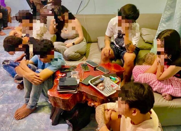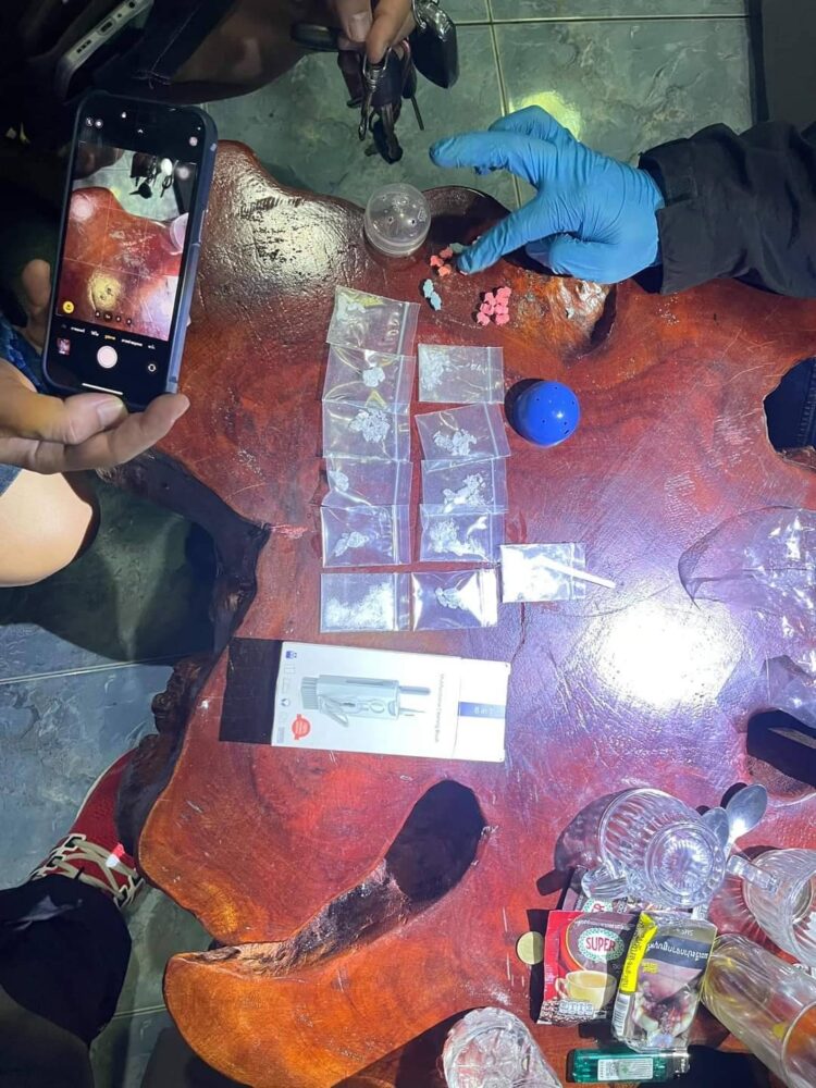เมื่อเจ้าหน้าที่ไปถึงได้แสดงตัวเพื่อขอทำการตรวจค้นพบกลุ่มวัยรุ่นเป็นผู้ชาย 11 คน ผู้หญิง 4 คน รวมทั้งสิ้น 15 คนจับกลุ่มจัดปาร์ตี้เสพยาเสพติดกัน เจ้าหน้าที่ตำรวจจึงทำการตรวจปัสสาสะพบว่า กลุ่มวัยรุ่นชาย-หญิงทั้ง 15 คน ปัสสาวะเป็นสีม่วง และจากการตรวจค้นภายในห้องพบยาเสพติดประเภท 1(ยาบ้า) จำนวน 100 เม็ด