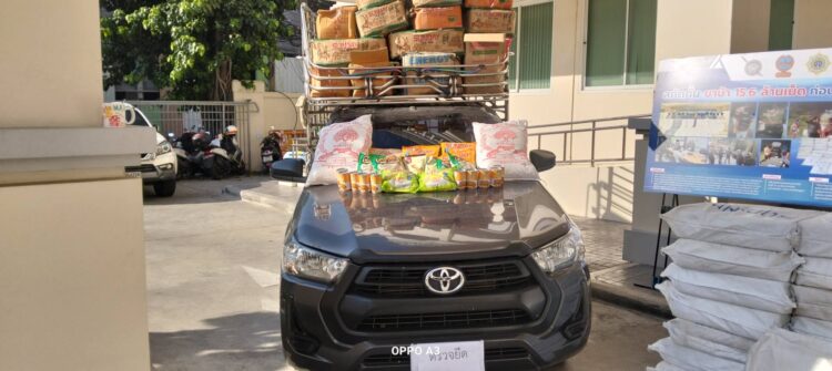 สืบเนื่องจาก วันที่ 9 ธ.ค.67 เวลาประมาณ 03.00 น. ขณะที่เจ้าหน้าที่ตำรวจเฝ้าติดตามกลุ่มผู้ค้ายาเสพติดที่กำลังขนลำเลียงยาเสพติด พบรถยนต์กระบะ แบบมีคอกเหล็กสูง ใช้ผ้าใบปิดคลุม กำลังขับมาที่กลางซอยถนนรณชัย อ.บางปะอิน จ.พระนครศรีอยุธยา เจ้าหน้าที่ตำรวจที่ได้สะกดรอยติดตามเชื่อว่าเป็นรถยนต์ที่ใช้ขนยาเสพติดมาเก็บที่แหล่งพักยา จึงได้ใช้รถยนต์ของทางเจ้าหน้าที่ปิดหน้า และปิดท้าย เพื่อให้รถยนต์คันดังกล่าวหยุดและทำการตรวจค้นพบว่าภายในรถกระบะบรรทุกประเภทเครื่องอุปโภคบริโภค เช่น ขนม เครื่องดื่มชูกำลัง เส้นหมี่ ซึ่งเป็นสินค้าที่ผลิต และนำเข้ามาจากประเทศเพื่อนบ้าน วางไว้อยู่ด้านท้าย และด้านบนเพื่อปกปิดและอำพรางการตรวจของเจ้าหน้าที่ตำรวจ