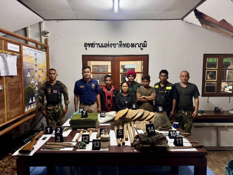 แก๊งลักลอบขุดดิน-หิน ร่อนแร่ทอง ผู้ต้องหามีทั้งพม่า-กะเหรี่ยง ของกลาง รถ จยย.ซากสัตว์ป่า ปืนติดลำกล้อง กระสุนอีกเพียบ