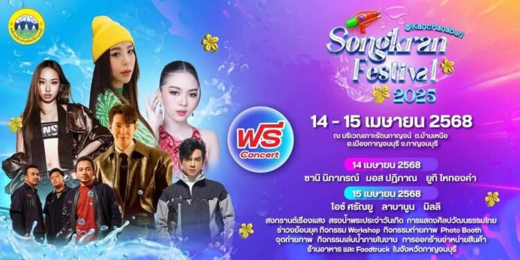 “Songkran Festival 2025 @Kanchanaburi” ที่จัดขึ้นระหว่างวันที่ 14 – 15 เมษายน 2568 เวลา 17.00 น. – 24.00 น. ณ บริเวณเกาะรัตนกาญจน์ ตำบลบ้านเหนือ อำเภอเมืองกาญจนบุรี จังหวัดกาญจนบุรี ในปีนี้ตอกย้ำความยิ่งใหญ่และความชุ่มฉ่ำของปีนี้ไปกับสงกรานต์เรืองแสง ที่ภายในงานจะพาทุกท่านไปพบกับความสนุกและกิจกรรมมากมาย ไม่ว่าจะเป็นกิจกรรมการสืบสานศิลปะและจารีตประเพณีสงกรานต์ การสรงน้ำพระประจำวันเกิด และการแสดงรำวงย้อนยุค จาก วง THE LEGEND และ วง MIDI BAND และยังมีกิจกรรม Workshop DIY ยาดมสมุนไพร และเพลิดเพลินไปกับซุ้มเล่นเกมย้อนยุค สาวน้อยตกน้ำ และซุ้มเล่นเกมโยนห่วง พร้อมเชิญชวนประชาชนในพื้นที่และนักท่องเที่ยวที่มาร่วมงาน มาแต่งกายแบบไทยๆ เพื่อลุ้นรับรางวัลพิเศษกับกิจกรรม แชะ แอนด์ แชร์ และภายในงานนี้