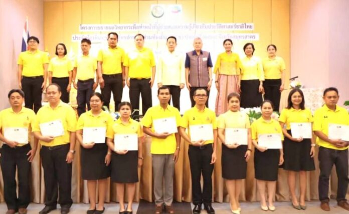 โครงการขยายผลวิทยากรเพื่อทำหน้าที่ถ่ายทอดความรู้เกี่ยวกับประวัติศาสตร์ชาติไทยประจำท้องถิ่นระดับองค์กรปกครองส่วนท้องถิ่น (ครู ข) ประจำปี 2568 ได้ดำเนินการระหว่างวันที่ 25 – 27 เมษายน 2568 ห้องประชุมโรงแรมแกรนด์ อินเตอร์ โอเทล ตำบลโคกขาม อำเภอเมืองฯ จังหวัดสมุทรสาคร จังหวัดสมุทรสาครมีผู้เข้าร่วมการอบรมครู ข ประจำปี 2568 จำนวน 44 คน จากองค์กรปกครองส่วนท้องถิ่น โดยได้อบรมเน้นย้ำความสำคัญของการเรียนรู้ประวัติศาสตร์ไทยและ