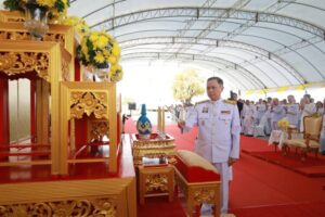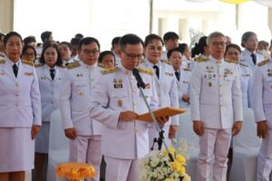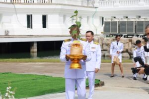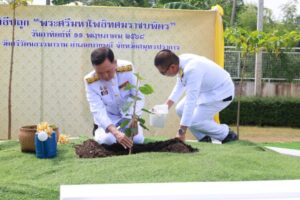 นายประทีป นทีทวีวัฒน์ รองผู้ว่าราชการจังหวัดสมุทรปราการ นายณัชวันก์ อัลภาชน์ เตชะเสน รองผู้ว่าราชการจังหวัดสมุทรปราการ หัวหน้าส่วนราชการ ข้าราชการ และประชาชนทุกภาคส่วนร่วมพิธี โดยผู้ว่าราชการจังหวัดสมุทรปราการ ประกอบพิธีถวายราชสักการะเบื้องหน้าพระบรมฉายาลักษณ์ พระบาทสมเด็จพระเจ้าอยู่หัว พร้อมกล่าวสำนึกในพระมหากรุณาธิคุณ จากนั้นประกอบพิธีปลูก “พระศรีมหาโพธิทศมราชบพิตร” ที่มณฑลปลูก โดยมีพระสงฆ์ทรงสมณศักดิ์ 10 รูป เจริญชัยมงคลคาถา ต่อจากนั้น ผู้ว่าราชการจังหวัดสมุทรปราการ นำผู้ร่วมพิธีรับชมวิดีทัศน์ “ธรรมนาวาวัง” ธรรรมะพระราชทาน เนื่องในวันวิสาขบูชา พุทธศักราช 2568