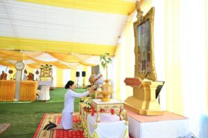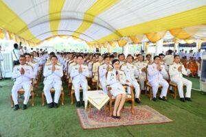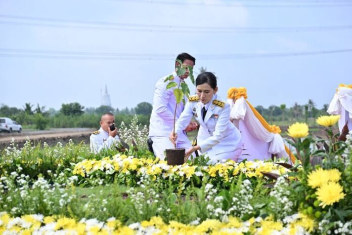 ประธานในพิธีปลูกต้น “พระศรีมหาโพธิทศมราชบพิตร” พร้อมด้วย คณะสงฆ์จังหวัดนครปฐม หัวหน้าส่วนราชการ และพุทธศาสนิกชนในพื้นที่ เข้าร่วมพิธีปลูกต้นพระศรีมหาโพธิทศมราชบพิตรพระราชทาน และชมวีดิทัศน์ “ธรรมนาวาวัง” ธรรมะพระราชทาน เนื่องในวันวิสาขบูชา พุทธศักราช 2568 เพื่อความเป็นสิริมงคล