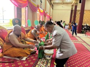 ภายในงานได้ประกอบพิธีบำเพ็ญกุศลอุทิศถวายแด่บูรพาจารย์ อดีตเจ้าอาวาสวัดมหาวงษ์ พระครูสุนทรธรรมวงศ์ อดีตเจ้าคณะตำบลปากน้ำ และผู้ทำคุณประโยชน์ต่อวัด โดยมีนางธัญยธรณ์ พาณิชย์พิศาล คหบดีผู้ใจบุญ เป็นประธานฝ่ายฆราวาสจุดเครื่องทองน้อย ถวายสักการะบูรพาจารย์ โดยมีพระครูสมุทรวชิรธรรม เจ้าอาวาสวัดมหาวงษ์ ประธานฝ่ายสงฆ์ ทอดผ้าบังสุกูล พระสงฆ์ทรงสมณศักดิ์ 10 รูป พิจารณาผ้าไตรบังสุกุล จากนั้น เป็นพิธีสมโภชสัญญาบัตร – พัดยศ จร ทช. พระครูสมุทรวชิรธรรม (สราวุฒิ โรจนธม,โม ทินเที่ยง) “” เจ้าอาวาสวัดมหาวงษ์ โดยมีพระครูภาวนาสมณคุณ (เจ้าอาวาสวัดชัยมงคล/เจ้าคณะอำเภอเมือง) เป็นประธานฝ่ายสงฆ์ จุดธูปเทียนบูชาพระรัตนตรัย นายอัครนันท์ พาณิชย์พิศาล คหบดีผู้ใจบุญ เปิดกรวยกระทงดอกไม้ถวายสักการะหน้าพระบรมฉายาลักษณ์พระบาทสมเด็จพระปรเมนทรรามาธิบดีศรีสินทรมหาวชิราลงกรณ พระวชิรเกล้าเจ้าอยู่หัว พระสงฆ์ทรงสมณศักดิ์ 10 รูป เจริญพระพุทธมนต์ ชัยมงคลคาถา คณะศิษยานุศิษย์ ร่วมกันถวายจตุปัจจัยไทยธรรม พระสงฆ์อนุโมทนา กรวดน้ำ รับพร