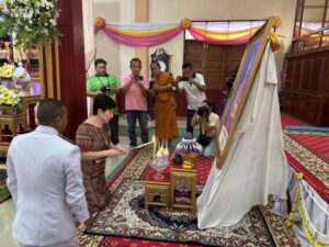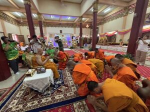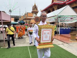 วันที่ 30 มิถุนายน 2568 เวลา 17.00 น. ที่ศาลาสาธุชนาสามัคคี (หอม บุญมาทัศ) วัดมหาวงษ์ ตำบลปากน้ำ อำเภอเมือง จังหวัดสมุตรปราการ พระบาทสมเด็จพระเจ้าอยู่หัว ทรงพระกรุณาโปรดเกล้าฯ เลื่อนสมณศักดิ์ พระปลัดสราวุฒิ โรอนฺธมฺโม (ทินเตียง) น.ธ.เอก เจ้าอาวาสวัดมหาวงษ์ เป็น พระครูสมุทรวชิรธรรม จร.ชท โดยมีคณะพระภิกษุสงฆ์วัดมหาวงษ์ ครอบครัวพาณิชย์พิศาล นำโดยนายอัครนันท์-นางธัญยธรณ์ และนางสาวปิยนุช พาณิชย์พิศาล ครอบครัวคหบดีผู้ใจบุญ ครอบครัววรัณวงศ์เจริญ นายธนิตพงษ์-นางทิพย์ประภา วรัณวงศ์เจริญ กลุ่มชมรมโฮบสะพานบุญ แห่งความหวังและศรัทธา คณะกรรมการวัดมหาวงษ์ ไวยาวัจกร กัลยาณมิตรวัดพระธรรมกาย และคณะศิษยานุศิษย์วัดมหาวงษ์ เข้าร่วมงานกันอย่างพร้อมเพรียง