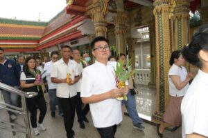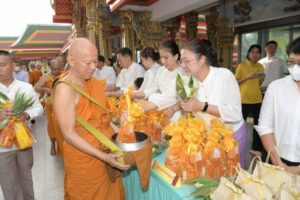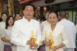 อาสาฬหบูชาและวันเข้าพรรษา ประจำปี 2568 พร้อมด้วยนางพรศรี ตรงศิริประธานแม่บ้านมหาดไทยจังหวัดนนทบุรี นายอภิชัยอร่ามศรี นางสาวปาณิสรากาญจนะจิตรา นางรวีพรรณแก้วเพียงเพ็ญ รองผู้ว่าราชการจังหวัดนนทบุรี ร่วมพิธีถวาย