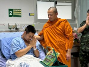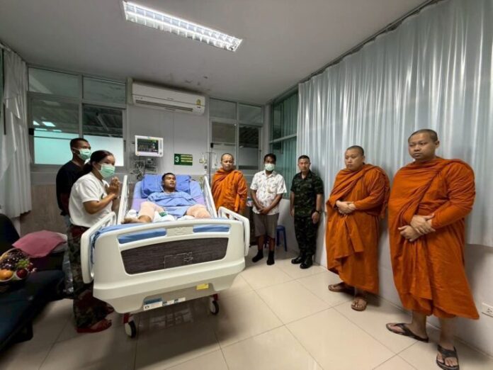 พระเชตุพนฯ มอบหมายให้ พระราชปัญญาวชิรากร ผู้ช่วยเจ้าอาวาสวัดพระเชตุพนฯ พร้อมด้วยพระครูปลัดพีระพงศ์ เลขานุการเจ้าคณะจังหวัดอุบลราชธานี เข้าเยี่ยมและมอบกระเช้าให้กำลังใจ พลทหารธนพัฒน์ หุยวัน ทหารที่ได้รับบาดเจ็บ