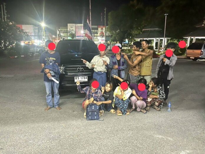 จากการสอบถามผู้ถูกจับกุม ที่ 1 ให้การกว่า เมื่อวันที่ 1 ตุลาคม 2568 เวลาประมาณเที่ยงได้รับการติดต่อจาก นายอ่อง ไม่มีนามสกุล เบอร์โทร 092-55977450 โทรมาหา นายชาน ผู้ต้องหาที่เบอร์ 084- 5997170 ให้ไปรับบคุคลต่างด้าวที่บริเวณใหน ฝั่งมอญ อำเภอสังขละบุรี เพื่อจะไปส่งที่ จ.ครปฐม โดยใช้เส้นทาง ทล.323 ผ่าน อ.สังขละบุรี อ.ทองผาภูมิ อ.เมืองกาญจนบุรี ไปยัง จ.นครปฐม ได้รับค่าจ้างหัวละ 2,500 บาท รวมทั้งหมด 10 คน เป็นเงิน จำนวน 25,000 บาท โดยได้เงินสดจากนายอ่อง เมื่อส่งคนงานเรียบร้อย โดยทำเป็นครั้งแรก จากการสอบถาม ผู้ถูกจับที่ 2-11 (ผ่านล่ามแปล) ให้การว่ามาจากเมืองพะโค และเมืองเนปิดอร์ ประเทศเมียนมา ผ่านเข้ามาทางเจดีย์ สามองค์และไม่มีเอกสารที่ทางราชการออกให้และไม่สามารถพูดไทยได้เพื่อจะเข้าไปทำงานที่ จ.นครปฐม โดยจ่ายเงินให้กับนายหน้าคนละ 10,000 บาทเพื่อเป็นค่าเดินทาง เจ้าหน้าที่ชุดจับกุม จึงแจ้งให้ผู้ต้องกาทุกคนทราบว่า การกระทำดังกล่าวมีความผิด จะต้องถูกจับกุม โดยแจ้งข้อกล่าวหา ผู้ต้องหาที่ 1 กระทำผิดฐาน “ซ่อนเร้น ช่วยเหลือหรือช่วยด้วยประการใดๆแก่บุคคลต่างด้าวที่หลบหนีเข้ามาในราชอาณาจักรไทยโดยผิดกฎหมาย เพื่อให้พ้นจากการจับกุม” และแจ้งข้อกล่าวหาผู้ต้องหาที่ 2-11 กระทำผิดฐาน “เป็นบุคคลต่างด้าวหลบหนีเข้ามาและในราชอาณาจักรไทยโดยไม่ได้รับอนุญาต” จึงได้ควบคุมตัวทั้งหมดพร้อมของกลางส่ง พงส.สภ.เมืองกาญจนบุรี เพื่อดำเนินคดีตามกฎหมาย