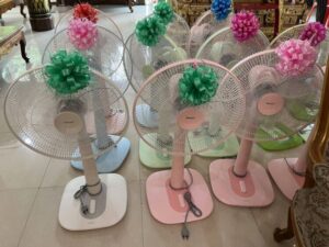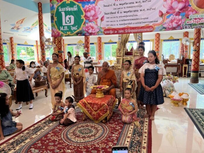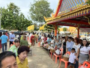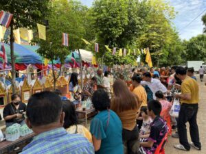 เจ้าอาวาสวัดโพธิ์ศรีสุขาราม (โพธิ์เลี้ยว) และพระใบฎีกาวินิจ สมจิตโต (เจ้าอาวาส) จึงมอบของขวัญ ปีนี้ทางวัดได้จัดของขวัญให้กับผู้ที่มาเป็นเทพบุตรและนางฟ้าเป็นพัดลมให้กับนางฟ้าทุก คน หลังรับของขวัญและรับพรจากพระสงฆ์ชาวบ้านที่มาทำบุญจึงเดินทางกลับ