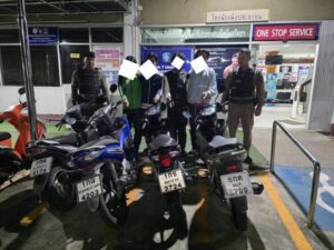 ขณะที่ในส่วนของพื้นที่ สภ.กระทุ่มแบน เป็นการจับกุมแก๊งค์ “วัยรุ่นเด็กชาวกัมพูชา” กลุ่มเด็กต่างด้าวโดยร่วมกับคนไทย ร่วมกันขโมยรถจักรยานยนต์ มีผู้ต้องหารวมจำนวน 5 คน มีคนไทยคือนายรัชพลหรือแป๊ะซะ อายุ 16 ปี นายนนท์วัฒน์ หรือปูน อายุ 17 ปี ร่วมกับ เพื่อนชาวกัมพูชาอีก 3 คน ทั้งหมดมีอายุระหว่าง 16 – 17 ปี ขณะถูกจับ ยังห้าวบอกว่า พวกตนชาวกัมพูชาจะลักรถพวกเสียมให้หมดเลยในพื้นที่ สภ.กระทุ่มแบน ทางเจ้าหน้าที่ตำรวจสืบสวนฯ นอกจากจะจับกุมผู้ก่อเหตุไว้ได้แบบยกแก๊งแล้ว ยังติดตามของกลางเป็นรถจักรยานยนต์ของผู้เสียหายกลับคืนมาได้อีกหลายคัน โดยทางผู้ต้องหาแก็ง “ชาวเขมร” ถูกตั้งข้อกล่าวหาว่า “ร่วมกันลักทรัพย์ (รถจักรยานยนต์ )ในเวลากลางคืนหรือรับของโจร”