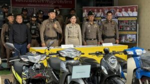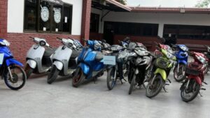 ตรวจสอบและได้ตรวจยึดรถจักรยานยนต์ทั้งหมดเป็นทองกลาง จากการสอบถามเบื้องต้น ผู้ต้องหาทั้งหมดเผยว่า