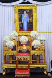ฉายาลักษณ์สมเด็จพระนางเจ้าสิริกิติ์ พระบรมราชินีนาถ พระบรมราชชนนีพันปีหลวงจากนั้น คณะสงฆ์ได้สวดพระอภิธรรมทำนองหลวง เพื่ออุทิศถวายเป็นพระราชกุศล ภายหลังการสวดพระอภิธรรมทำนองหลวง ประธานและคณะได้ร่วมถวาย