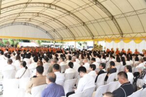 ฝ่ายฆราวาส พร้อมด้วย นายเกียรติศักดิ์ ตรงศิริ ผู้ว่าราชการจังหวัดนนทบุรี คณะผู้บริหาร ข้าราชการ ตลอดจนผู้แทนจากหน่วยงานภาครัฐและเอกชน เข้าร่วมในพิธีอย่างพร้อมเพรียง