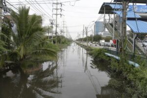 ป้องกันและบรรเทาสาธารณภัยจังหวัดนนทบุรี (ปภ.นนทบุรี) ร่วมลงพื้นที่ติดตามสถานการณ์น้ำและการระบายน้ำบริเวณประตูระบายน้ำคลองส่วย ใกล้ห้างสรรพสินค้าวันวัน ถนนประชานิเวศน์ พบว่าหน่วยงานที่เกี่ยวข้องได้เร่งดำเนินการระบายน้ำอย่างเต็มกำลัง ส่งผลให้พื้นที่ที่เคยมีน้ำท่วมขังระดับน้ำลดลงอย่างต่อเนื่อง และขณะนี้ไม่เหลือน้ำท่วมขังในบริเวณดังกล่าวแล้ว