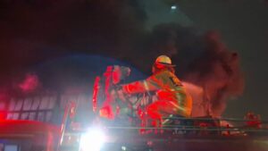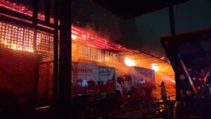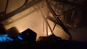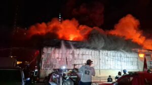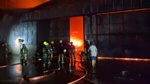 เมื่อถึงจุดเกิดเหตุ พบโกดังเก็บสินค้าขนาดใหญ่ปลูกติดกันจำนวน 4 หลัง ภายในมีเปลวไฟลุกโหมอย่างรุนแรง พร้อมกลุ่มควันหนาทึบปกคลุมทั่วพื้นที่ สลับกับเสียงระเบิดดังเป็นระยะ เจ้าหน้าที่ดับเพลิงต้องเร่งวางแนวฉีดน้ำหลายหัว เพื่อสกัดไม่ให้เพลิงลุกลามออกนอกพื้นที่