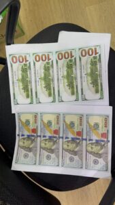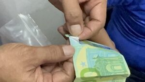 ส่วนธนบัตรต่างประเทศ (ยูโร) ปลอม เป็นงินสกุลยูโรฉบับละ 100 ยูโร จำนวน 5 ฉบับ (หมายเลข AX34117842254 จำนวน 2 ฉบับ , AD11533784038 จำนวน 2 ฉบับ , AE26783368291 จำนวน 1 ฉบับ)