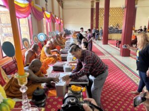 ภัตตาหารเพล แด่พระสงฆ์ จำนวน 34 รูป เนื่องในโอกาส วันคล้ายวันเกิดคุณพ่ออัครนันท์ พาณิชย์พิศาล ประธานกิตติมศักดิ์ชมรมโฮป และนางสาวปิยนุช พาณิชย์พิศาล ประธานชมรมโฮปสะพานบุญแห่งความหวังและศรัทธา โดยได้รับความเมตตาจากพระครูสมุทรวชิรธรรม (สราวุฒิ โรจนธมฺโม)
