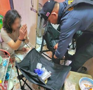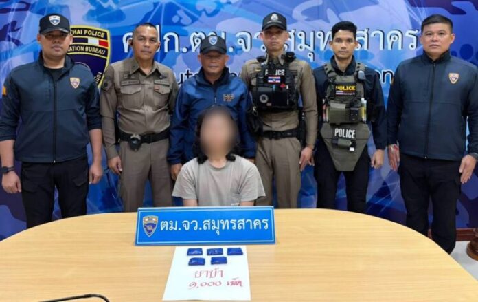 จึงได้บุกเข้าทำการตรวจค้นและจับกุม นาย ตะวัน อายุ 18 ปี สัญชาติเมียนมา พร้อมของกลาง ยาบ้า จำนวน มาก แจ้งข้อหา “จำหน่ายโดยการมีไว้ในครอบครองเพื่อจำหน่ายซึ่งยาเสพติดให้โทษประเภท 1 (ยาบ้า) โดยไม่ได้รับอนุญาต” และ “เป็นคนต่างด้าวเดินทางเข้ามาและอยู่ในราชอาณาจักรไทยโดยไม่ได้รับอนุญาต” ตาม พรบ.คนเข้าเมือง พ.ศ.2522นำตัวผู้ต้องหาพร้อมของกลาง ส่งพนักงานสอบสวน สภ.โคกขาม จังหวัดสมุทรสาครเพื่อดำเนินคดีตามกฎหมายต่อไป