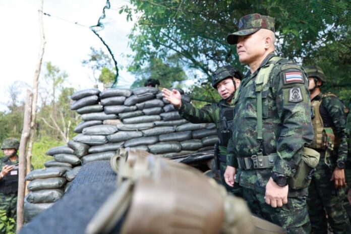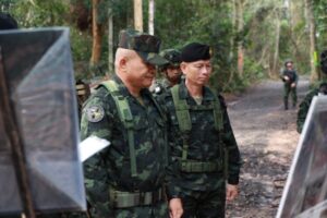 เมื่อวันที่ 14 พฤศจิกายน 2568 พลโท วีระยุทธ รักศิลป์ แม่ทัพภาคที่ 2 / ผู้บัญชาการศูนย์ปฏิบัติการกองทัพภาคที่ 2 ลงพื้นที่ตรวจเยี่ยมการปฏิบัติของกำลังพลในพื้นที่กองกำลังสุรนารี เพื่อประเมินสถานการณ์จริงในพื้นที่ชายแดนไทย–กัมพูชา เน้นย้ำให้หน่วยในพื้นที่เสริมมาตรการรักษาความปลอดภัยทุกมิติ ทั้งการลาดตระเวน การเฝ้าตรวจ การวิเคราะห์ข่าวกรอง และการปฏิบัติตามแผนเฝ้าระวังภัยคุกคามทุกรูปแบบ พร้อมยกระดับความพร้อมรบของกำลังพล เพื่อป้องกันเหตุร้ายและรักษาเสถียรภาพพื้นที่ชายแดนอย่างใกล้ชิด นอกจากนี้ ยังให้ความสำคัญ ต่อการปกป้องชีวิตกำลังพลและประชาชนในพื้นที่ โดยสั่งการให้ทุกหน่วยปฏิบัติด้วยความรอบคอบ ระมัดระวัง และยึดมาตรการความปลอดภัยขั้นสูงสุด