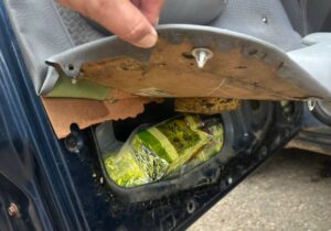 จากการตรวจค้นอย่างละเอียดที่ สภ.สังขละบุรี พบยาเสพติดให้โทษประเภท 1 (ยาไอซ์) ซุกซ่อนอยู่ตามจุดต่างๆ ในรถดังนี้: ประตูแคปหลังขวา 2 ถุง, ประตูหน้าขวา 8 ถุง, ใต้พื้นเบาะแคปหลัง 15 ถุง, แก้มขวาหน้า 9 ถุง, แก้มซ้ายหน้า 9 ถุง, ท้ายกระบะด้านขวา 15 ถุง, ท้ายกระบะด้านซ้าย 15 ถุง, ประตูหน้าซ้าย 8 ถุง, ประตูแคปหลังซ้าย 2 ถุง และใต้คอนโซลหน้ารถ 7 ถุง รวมทั้งหมด 90 ถุง แต่ละถุงหนัก 1 กิโลกรัม เมื่อนำไปชั่งรวมถุงบรรจุยาไอซ์ได้น้ำหนักรวม 95 กิโลกรัม มูลค่าประมาณ 9,000,000 บาท