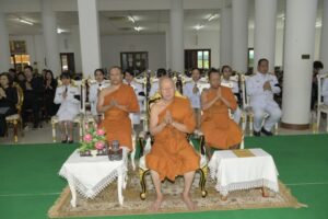 กุศล แด่สมเด็จพระนางเจ้าสิริกิติ์ พระบรมราชินีนาถ พระบรมราชชนนีพันปีหลวง ณ ศาลาการเปรียญวัดบัวขวัญ พระอารามหลวง จังหวัดนนทบุรี พร้อมด้วย นายยงยุทธ์ โพธิ์สระ รองผู้อำนวยการโรงเรียนสวน