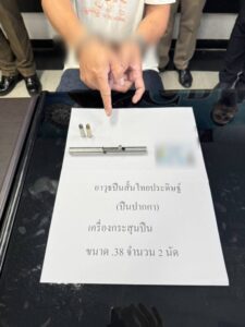 1. อาวุธปืนสั้นไทยประดิษฐ์แบบปืนปากกา จำนวน 1 กระบอก