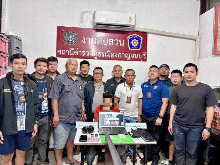 พันตำรวจโทมารุต ฉัตรทัณฑ์ สว.สืบสวน สภ.เมืองกาญจนบุรี พร้อมกำลัง อส. และชุดสืบสวน เข้าดำเนินการตรวจค้นเป้าหมาย